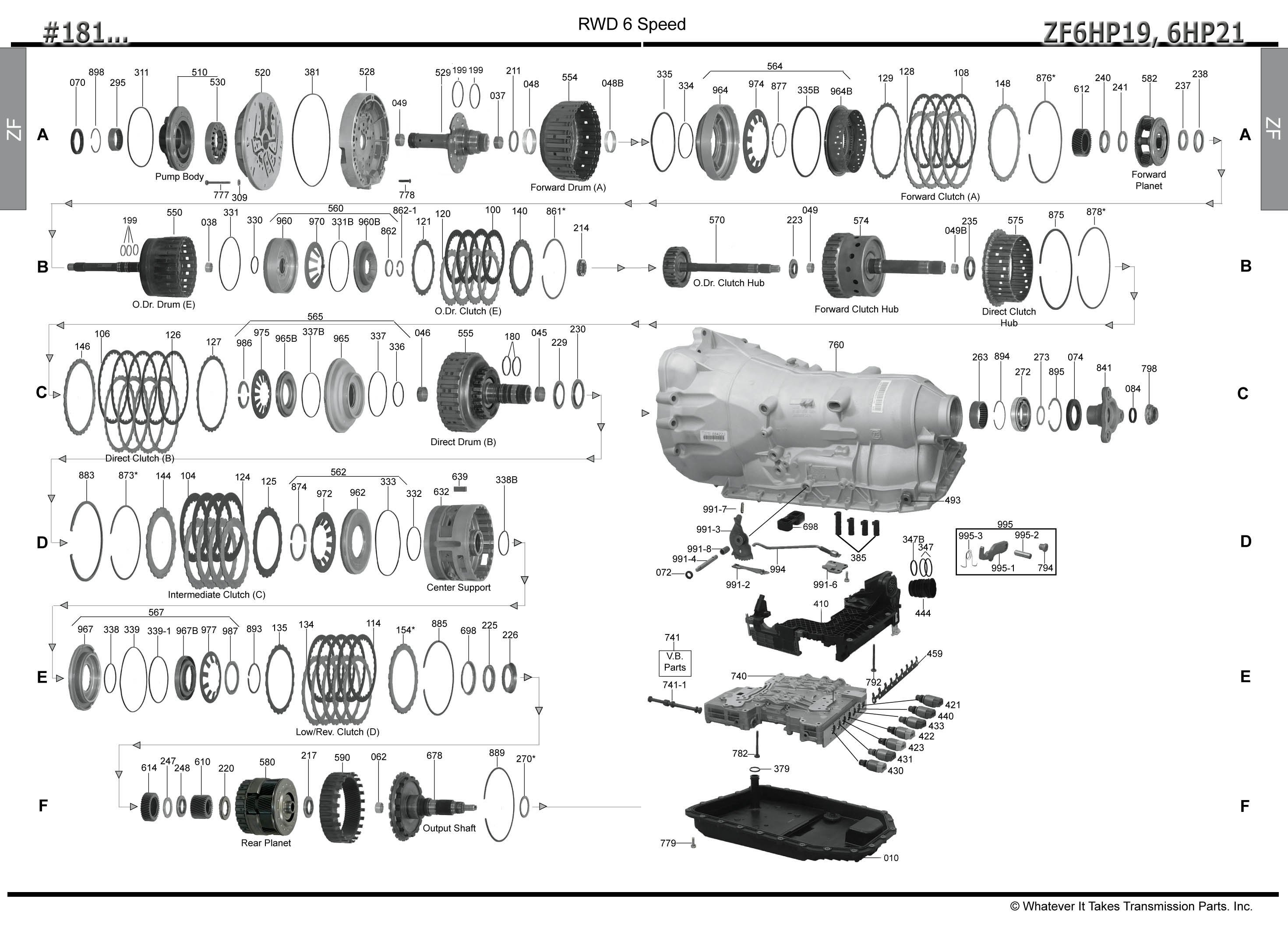 Комплект прокладок и сальников ZF6HP19 / 6HP21, BMW, HYUNDAI, JAGUAR, 2000-2010, (Ремкомплект/ Оверол кит/ Overhaul Kit)